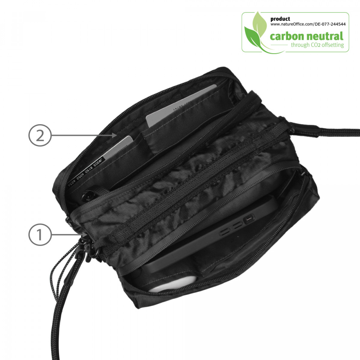 Crafted from recycled PET bottles, EcoWeave RPET 210T is a lightweight, sustainable fabric designed to reduce plastic waste. Strong, durable, and water-repellent, it offers an eco-friendly solution without compromising strength or convenience. It is ideal for everyday use in smaller bags and pouches. Ecoweave RPET 210T is GRS certified.BND985 Chili Bottle & Umbrella cross over bag is inspired by the yatching and mountainering world. Designed to carry your daily essentials discreetly, the Chili cross bag offers 2 main zipped compartments, a bottle/umbrella holder center area, and a removable shoulder strap that makes this cross bag perfect for anyone. You want it shorter? Easy! Just tie a knot or 2! BND985 is compatible with BND999 phone strap with insert card, allowing you to choose from 11 standard strap colors. BND982 is made of RPET. RPET is made from used PET bottles and constitutes a widely recyclable, reusable, sturdy material that supports the recycling industry and circularity through its multiple reuses.