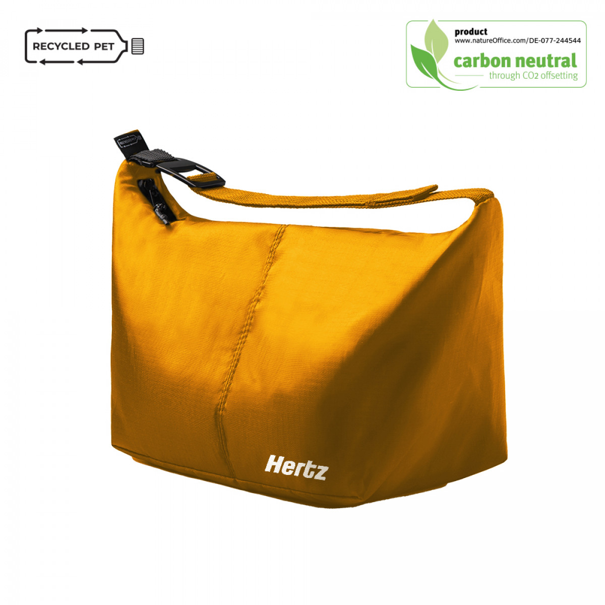 Crafted from recycled PET bottles, EcoWeave RPET 210T is a lightweight, sustainable fabric designed to reduce plastic waste. Strong, durable, and water-repellent, it offers an eco-friendly solution without compromising strength or convenience. It is ideal for everyday use in smaller bags and pouches. Ecoweave RPET 210T is GRS certified.BND986 is a trendy insulated bag keps your lunch and drinks cool on the go. With a volume of 6L, it easyly hold your lunch box and a drinking bottle. It's soft webbing with slide hook allows you to to attached to the outside of a tote or day bag. It's flat bottom lets it stand upright. BND986 comes with a built-in bottle opener. BND986 is made of RPET. RPET is made from used PET bottles and constitutes a widely recyclable, reusable, sturdy material that supports the recycling industry and circularity through its multiple reuses.