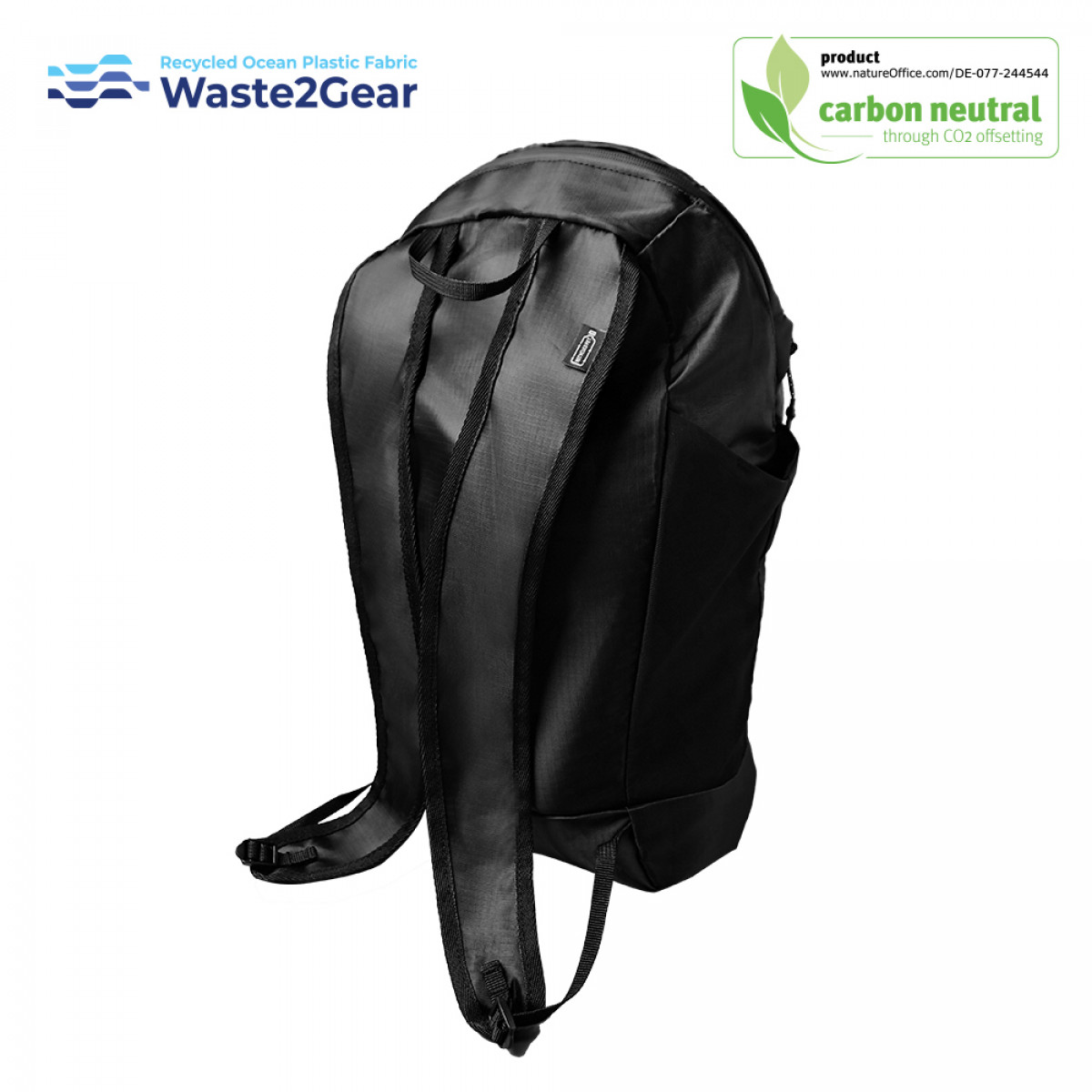 OceanLite 210T offers lightweight, water-repellent strength for everyday use. Made from ocean-recycled waste, it’s ideal for foldable bags, combining flexibility with sustainability. Designed to be light in weight but heavy on environmental responsibility, it’s perfect for eco-conscious, versatile solutions. OceanLite 210T is Ocean Cycle certified. Our eco-friendly packable backpack, a perfect blend of functionality and sustainability. This backpack not only delivers on durability but also minimizes environmental impact. It features a spacious main compartment with a reliable zipper closure, ensuring the security of your belongings. The front zipped pocket adds convenience for quick-access items, while the side mesh pocket is designed to hold your water bottle, keeping you hydrated on the go.Embrace the future of sustainable living with our rPET Backpack, your reliable companion for everyday adventures. Perfect for both your urban commute and outdoor escapades, it combines eco-consciousness with practicality, making it a must-have addition to your lifestyle. Made from recycled ocean plastic fabric. For more info on the benefits of recycled ocean plastic fabric, visit www.waste2gear.org