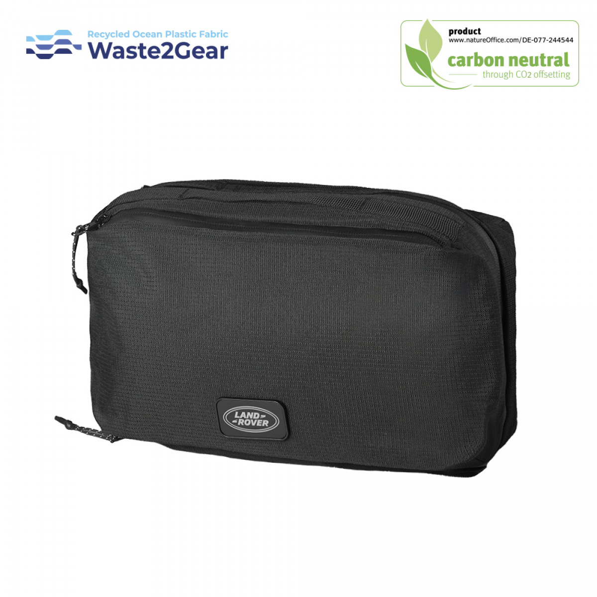 Built for the outdoors and every day urban life, OceanGuard 210D is Waste2Gear toughest fabric perfect for rugged use. With unmatched durability and strength, it’s crafted from ocean-recycled materials and recycled RPET to protect both your belongings and the planet. OceanGuard 210D is water repellent and ready for heavy-duty performance. OceanGuard 210D is Ocean Cycle certified. The BND946 Large Cosmetic Travel Pouch is a sustainable choice, made from OceanGuard 210D RipStop Polyester. With two main zipped compartments, a handy front zip pocket, and a useful hanging hook, it keeps your essentials organized and accessible. Multiple handles offer easy carrying, all in a water-repellent, durable design. For more info on the benefits of recycled ocean plastic fabric, visit www.waste2gear.org