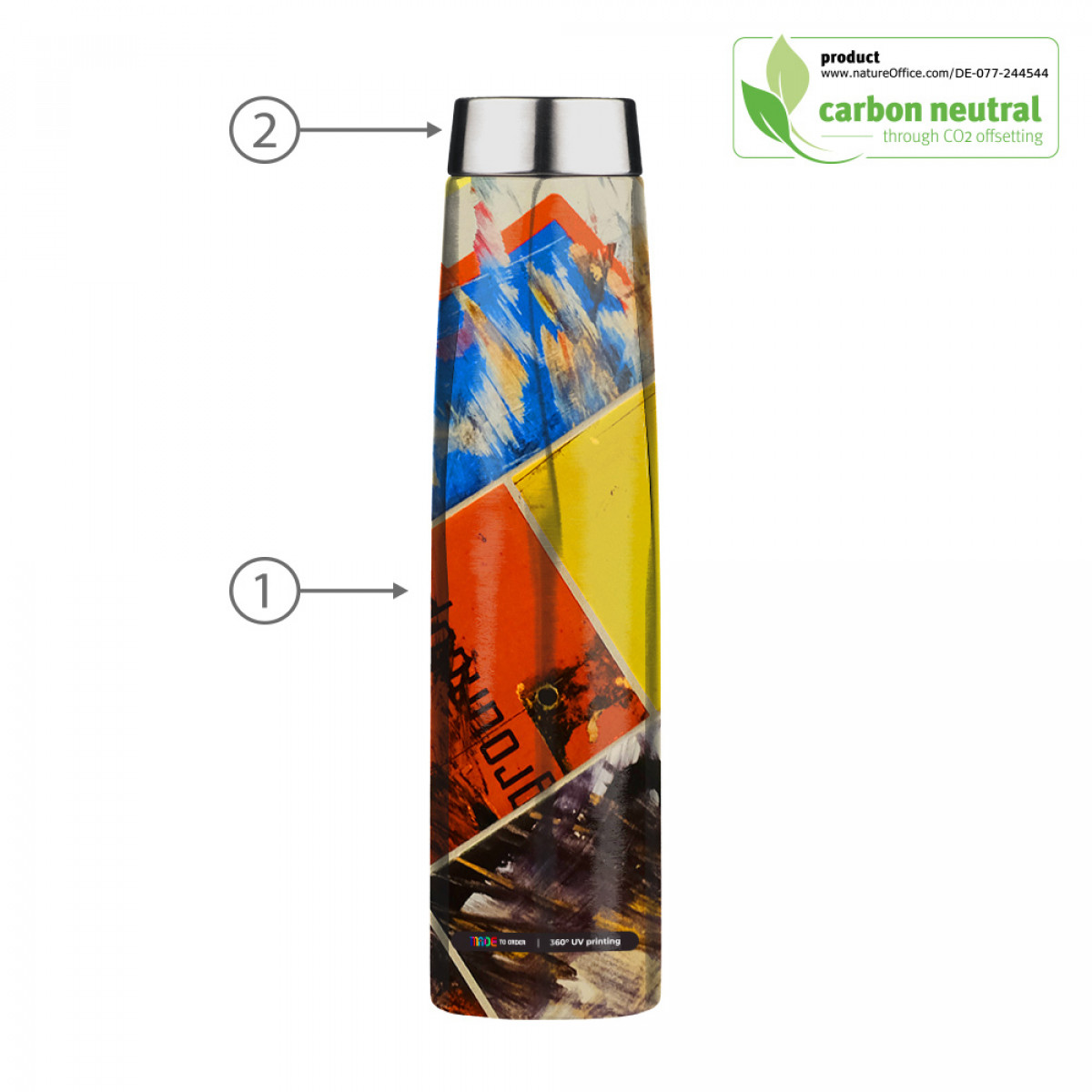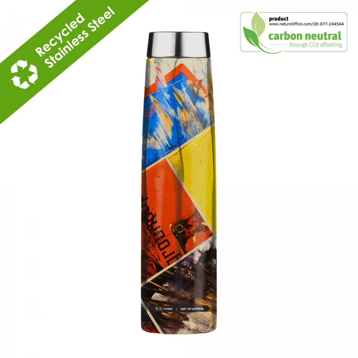 Portable and perfect for a fast-moving lifestyle all year round, our chic and reusable Calypso Stainless Steel Bottle offers an environmentally conscious alternative to plastic bottles. Stainless steel is a highly sustainable material due to its recyclability. It has one of the highest recycling rates of any metal, with over 90% of it being recycled worldwide. This means that stainless steel can be melted down and reused in the production of new products, reducing the need for new mining and extraction of raw materials. Additionally, stainless steel's long-lasting durability, low maintenance requirements, energy efficiency, and versatility make it an environmentally friendly choice. Its use can help reduce waste, conserve resources, and minimize the carbon footprint of products and processes. It can't get more sustainable than that !