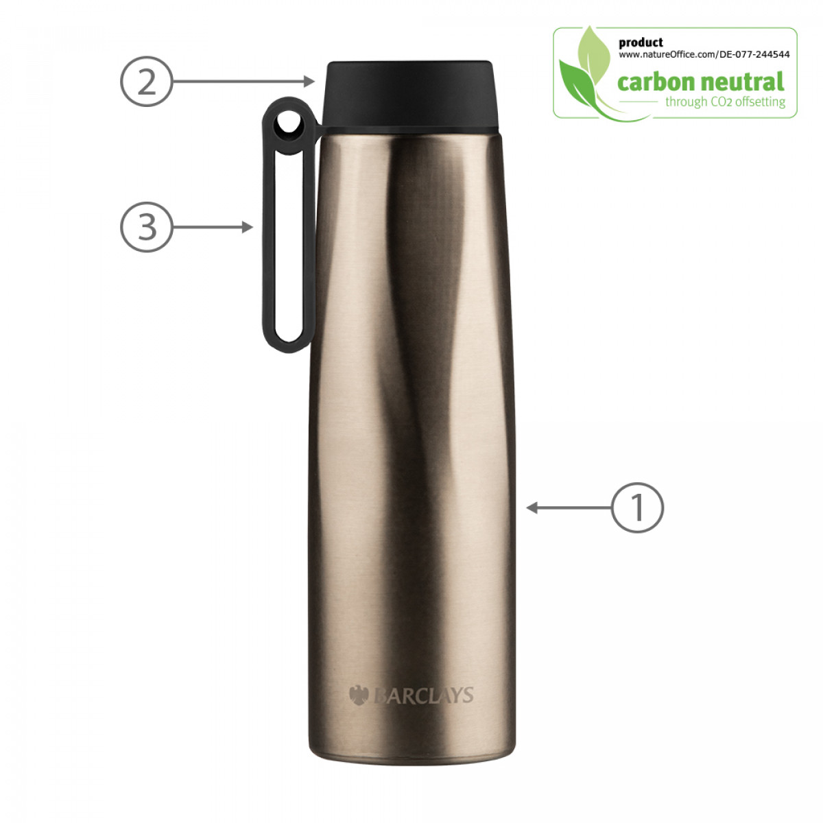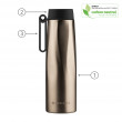 Keep hot beverages warm for up to 12 hours and cold for up to 24 hours. MADE TO FIT YOUR LIFE ! The ergonomic, rotating handle lets you quickly grab our Calypso bottle and go.Portable and perfect for a fast-moving lifestyle all year round, our chic and reusable Calypso Recycled Stainless Steel Bottle offers an environmentally conscious alternative to plastic bottles. Stainless steel is a highly sustainable material due to its recyclability. It has one of the highest recycling rates of any metal, with over 90% of it being recycled worldwide. This means that stainless steel can be melted down and reused in the production of new products, reducing the need for new mining and extraction of raw materials. Additionally, stainless steel's long-lasting durability, low maintenance requirements, energy efficiency, and versatility make it an environmentally friendly choice. Its use can help reduce waste, conserve resources, and minimize the carbon footprint of products and processes. It can't get more sustainable than that !