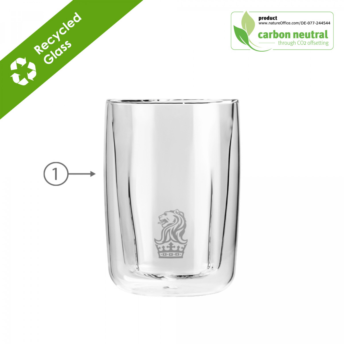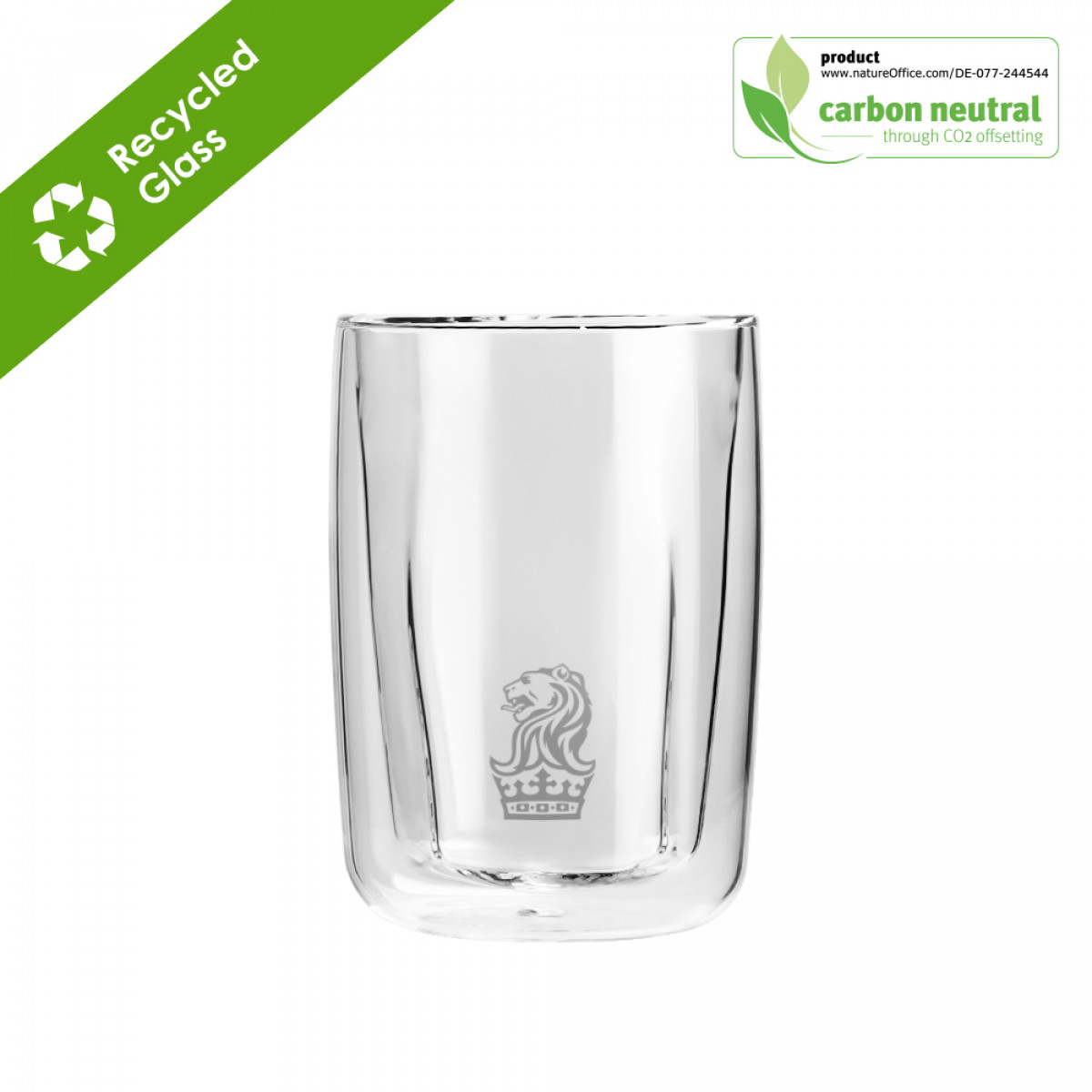 Part of our zero single use plastic drinking solution, our double wall driniking glasses are designed for office and home use. They come in 3 sizes : 80ml for espresso and shots lovers, 250ml for longer drinks, 330ml for sodas and fruits juices addicts. Double wall glasses have several benefits over normal glasses. They preserve the optimal temperature of your drinks for longer, prevent condensation and sweating, are comfortable and safe to hold, are durable and resistant to cracking, and have an elegant and stylish appearance.Glass is a sustainable material. It is 100% recyclable and reusable, and provides great environmental benefits such as contributing to mitigating climate change and saving precious natural resources.