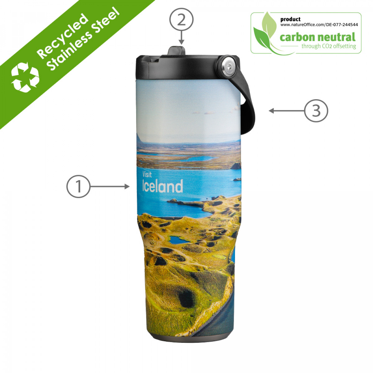 Keep hot beverages warm for up to 12 hours and cold for up to 24 hours. MADE TO FIT YOUR LIFE ! With straw included and a handle, this bottle is quite easy to use, portable and perfect for a fast-moving lifestyle all year round. our chic and reusable Calypso Recycled Stainless Steel Bottle offers an environmentally conscious alternative to plastic bottles. Stainless steel is a highly sustainable material due to its recyclability. It has one of the highest recycling rates of any metal, with over 90% of it being recycled worldwide. Additionally, stainless steel's long-lasting durability, low maintenance requirements, energy efficiency, and versatility make it an environmentally friendly choice.