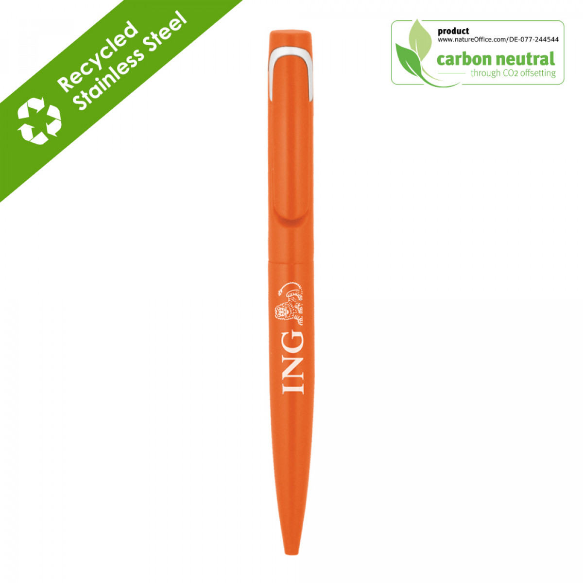 BND80 Twist Metal Ball Pen in Stainless Steel and ABS is the perfect blend of durability and style. Its stainless steel and ABS body offers a sleek and modern look, while also providing a sturdy construction that can withstand daily wear and tear. The twist mechanism is smooth and effortless, allowing you to easily switch between writing and capping. This pen writes with a steady and consistent flow, producing crisp, clear lines every time. Whether you're signing a contract or jotting down a quick note, this pen is sure to make a lasting impression. Stainless steel is a highly sustainable material due to its recyclability. It has one of the highest recycling rates of any metal, with over 90% of it being recycled worldwide. This means that stainless steel can be melted down and reused in the production of new products, reducing the need for new mining and extraction of raw materials. Additionally, stainless steel's long-lasting durability, low maintenance requirements, energy efficiency, and versatility make it an environmentally friendly choice. Its use can help reduce waste, conserve resources, and minimize the carbon footprint of products and processes.