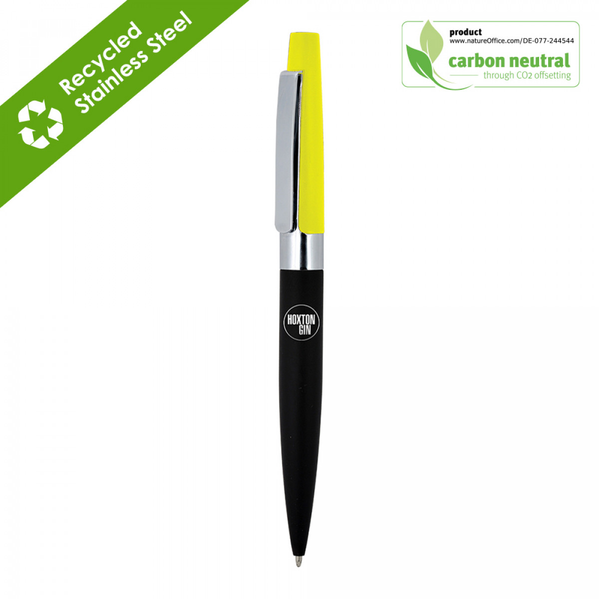 BND77 TWIST METAL BALLPEN is a sophisticated and refined writing tool that exudes luxury and quality. With its sleek stainless steel construction, this pen provides a smooth and sturdy feel in the hand. It has a simple yet elegant design, making it perfect for everyday use or as a premium gift. Whether you're jotting down notes in a meeting, signing an important document, or just jotting down a quick reminder, this ballpen is sure to impress with its timeless style and durability. Stainless steel is a highly sustainable material due to its recyclability. It has one of the highest recycling rates of any metal, with over 90% of it being recycled worldwide. This means that stainless steel can be melted down and reused in the production of new products, reducing the need for new mining and extraction of raw materials. Additionally, stainless steel's long-lasting durability, low maintenance requirements, energy efficiency, and versatility make it an environmentally friendly choice. Its use can help reduce waste, conserve resources, and minimize the carbon footprint of products and processes.