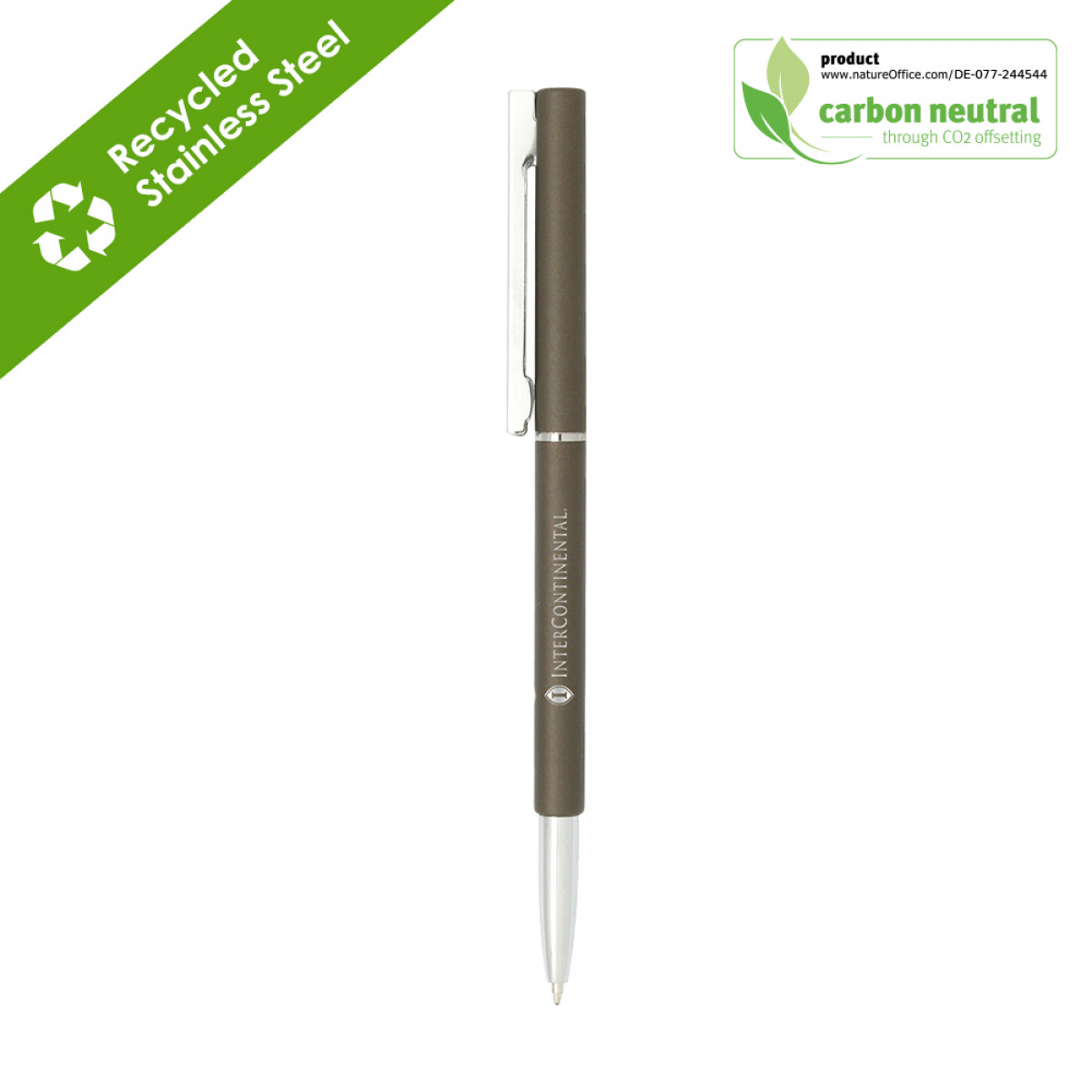 BND71 Thin Twist Metal Ball Pen is a ballpoint pen with a metal body that has a slim-chic profile. It operates using a twist mechanism, where the user twists the body of the pen to extend and retract the tip. The metal material provides durability and a sleek appearance, making it a popular choice for day-to-day use or as a promotional item. The slim profile makes the pen easy to carry in a pocket or notebook, and its twist mechanism protects the tip when not in use. The metal body gives BND71 a modern and professional look, making it a perfect fit for anyone looking for a premium yet a functional pen. Stainless steel is a highly sustainable material due to its recyclability. It has one of the highest recycling rates of any metal, with over 90% of it being recycled worldwide. This means that stainless steel can be melted down and reused in the production of new products, reducing the need for new mining and extraction of raw materials. Additionally, stainless steel's long-lasting durability, low maintenance requirements, energy efficiency, and versatility make it an environmentally friendly choice. Its use can help reduce waste, conserve resources, and minimize the carbon footprint of products and processes.
