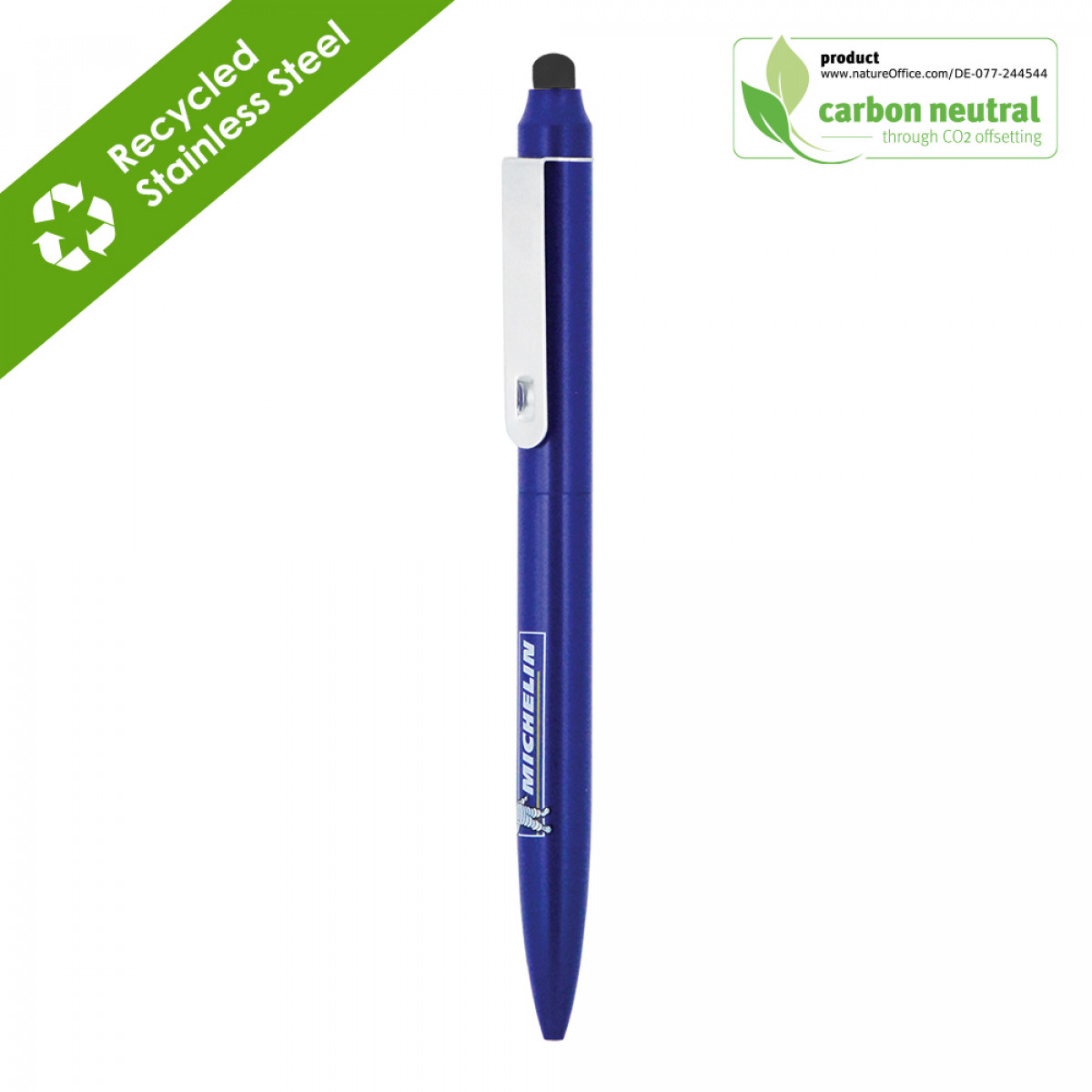 BND76S Stylus Twist Metal Ball Pen in Stainless Steel is the epitome of versatility and style. Its sleek stainless steel construction gives it a modern and sophisticated look, making it the perfect choice for both personal and professional use. The twist mechanism allows you to switch effortlessly between using the ballpoint pen and the stylus, making it ideal for writing and navigating your devices. The pen writes smoothly, providing clean and precise lines, while the stylus tip offers accurate navigation on touchscreens. Whether you're in a meeting, signing a contract, or simply jotting down a quick note, this pen is the ultimate combination of form and function. Stainless steel is a highly sustainable material due to its recyclability. It has one of the highest recycling rates of any metal, with over 90% of it being recycled worldwide. This means that stainless steel can be melted down and reused in the production of new products, reducing the need for new mining and extraction of raw materials. Additionally, stainless steel's long-lasting durability, low maintenance requirements, energy efficiency, and versatility make it an environmentally friendly choice. Its use can help reduce waste, conserve resources, and minimize the carbon footprint of products and processes.