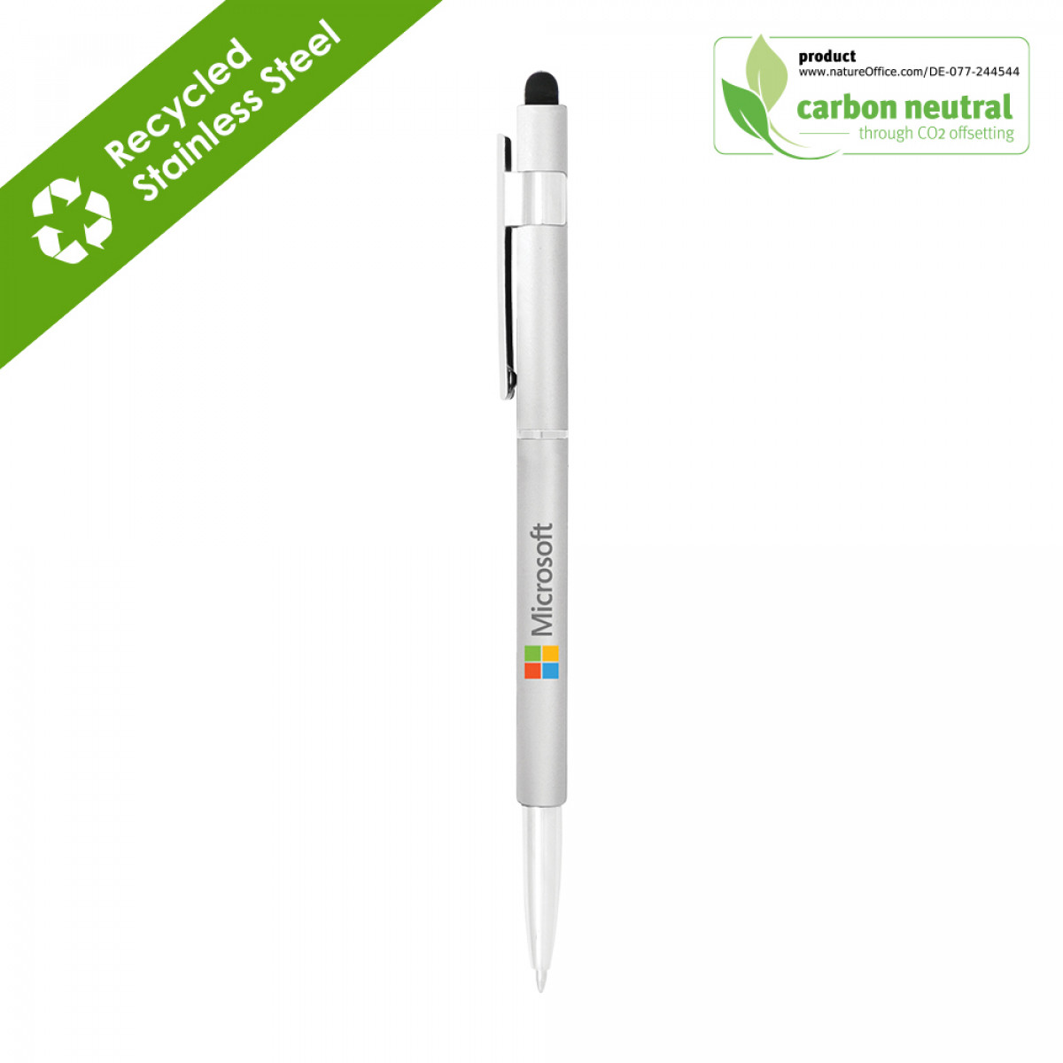 The Thin Stylus Twist Metal Ballpen, BND70S, is a versatile writing tool that is both stylish and practical. Its slim design makes it a great choice for those who are always on the go, while its brass, stainless steel, and ABS construction gives it a classic look that will never go out of style. The twist mechanism is quick and easy, allowing you to switch between the ballpoint pen and the stylus with ease. The pen writes with a smooth flow, producing clear and precise lines, and the stylus tip offers accurate navigation on touchscreens. Whether you're in a meeting, signing a contract, or simply jotting down a quick note, this pen is the perfect accessory for any occasion. Stainless steel is a highly sustainable material due to its recyclability. It has one of the highest recycling rates of any metal, with over 90% of it being recycled worldwide. This means that stainless steel can be melted down and reused in the production of new products, reducing the need for new mining and extraction of raw materials. Additionally, stainless steel's long-lasting durability, low maintenance requirements, energy efficiency, and versatility make it an environmentally friendly choice. Its use can help reduce waste, conserve resources, and minimize the carbon footprint of products and processes.