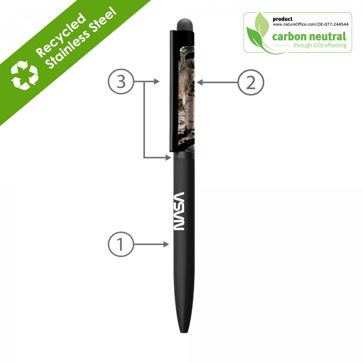 BND78XLS Stylus Twist Metal Ball Pen in Brass, Stainless Steel, and ABS is the epitome of modern elegance. Its brass, stainless steel, and ABS construction gives it a unique and stylish look that is sure to turn heads. The twist mechanism is smooth and effortless, allowing you to switch seamlessly between the ballpoint pen and the stylus. The pen writes with a steady and consistent flow, producing crisp, clear lines every time, while the stylus tip offers precise navigation on touchscreens. This pen is the perfect accessory for anyone who wants to make a statement while staying organized and productive. Stainless steel is a highly sustainable material due to its recyclability. It has one of the highest recycling rates of any metal, with over 90% of it being recycled worldwide. This means that stainless steel can be melted down and reused in the production of new products, reducing the need for new mining and extraction of raw materials. Additionally, stainless steel's long-lasting durability, low maintenance requirements, energy efficiency, and versatility make it an environmentally friendly choice. Its use can help reduce waste, conserve resources, and minimize the carbon footprint of products and processes.
