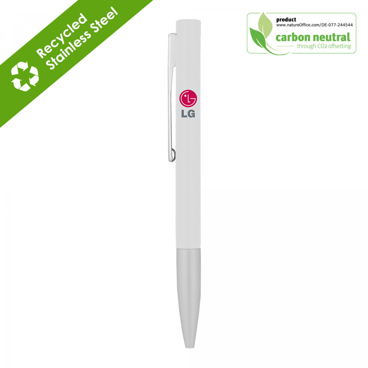BND83 TWIST METAL BALLPEN is a sophisticated and refined writing tool that exudes luxury and quality. With its sleek stainless steel construction, this pen provides a smooth and sturdy feel in the hand. It has a simple yet elegant design, making it perfect for everyday use or as a premium gift. Whether you're jotting down notes in a meeting, signing an important document, or just jotting down a quick reminder, this ballpen is sure to impress with its timeless style and durability. Stainless steel is a highly sustainable material due to its recyclability. It has one of the highest recycling rates of any metal, with over 90% of it being recycled worldwide. This means that stainless steel can be melted down and reused in the production of new products, reducing the need for new mining and extraction of raw materials. Additionally, stainless steel's long-lasting durability, low maintenance requirements, energy efficiency, and versatility make it an environmentally friendly choice. Its use can help reduce waste, conserve resources, and minimize the carbon footprint of products and processes.
