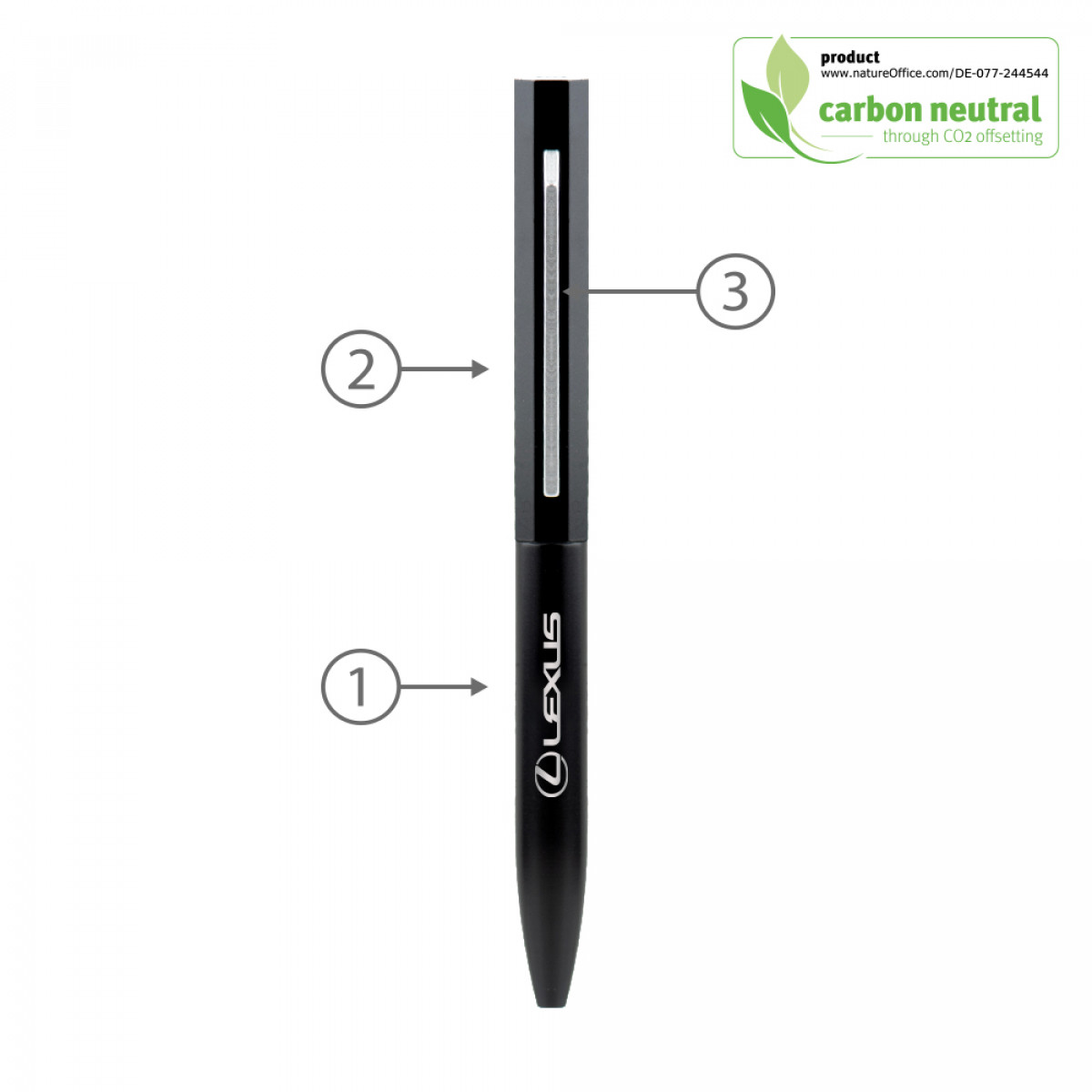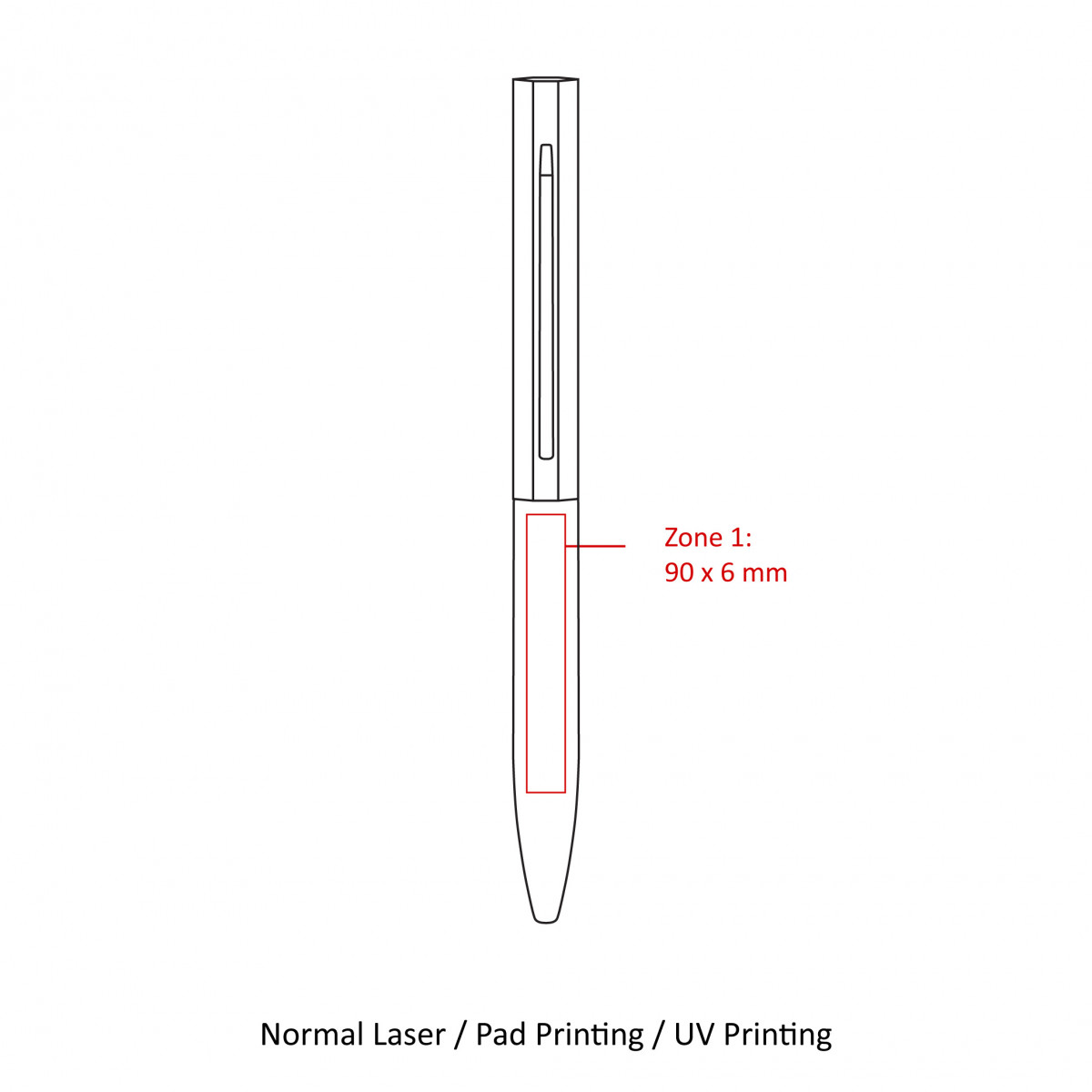 The kind of pen that takes itself seriously. The classy elegance of this pen can easily be enhanced by laser engraving your promotional logo in a fine chrome or gold finish, screen, or pad print. Aluminum is a highly sustainable material due to its recyclability. It has one of the highest recycling rates of any metal, with over 90% of it being recycled worldwide. This means that aluminum can be melted down and reused in the production of new products, reducing the need for new mining and extraction of raw materials. Additionally, aluminum's long-lasting durability, low maintenance requirements, energy efficiency, and versatility make it an environmentally friendly choice. Its use can help reduce waste, conserve resources, and minimize the carbon footprint of products and processes.