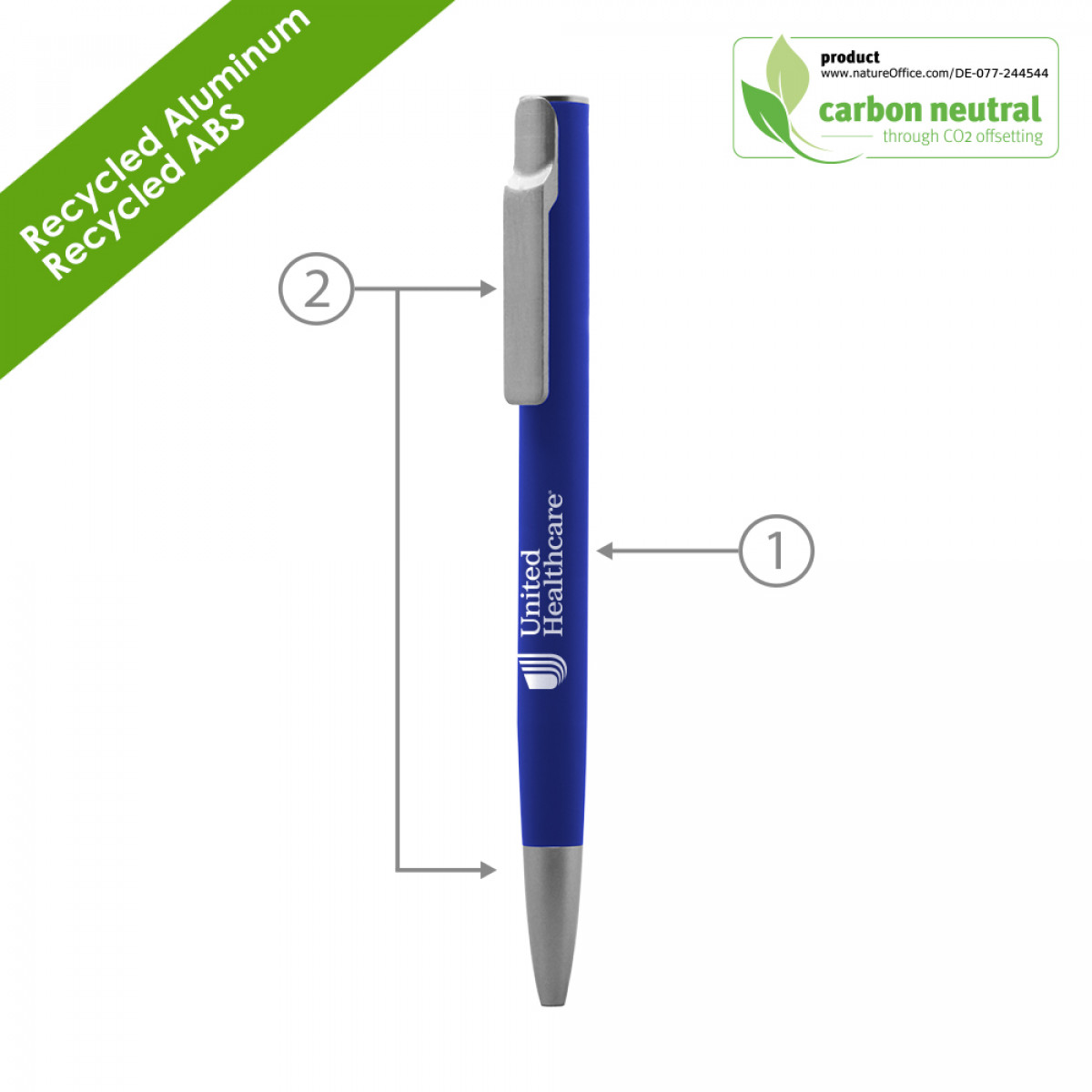 BND191 AIIE : fusion of elegance and eco-conscious design. Crafted with recycled aluminum and recycled ABS, this pen offers durability with a sleek, modern aesthetic. Unique to its design is the innovative push mechanism: simply press down on the clip to reveal the writing tip, combining ease of use with a sophisticated look. In line with chili's commitment to the environment, the BND191 AIIE is carbon-neutral, achieved through effective CO2 offsetting. Ideal for the eco-aware and style-savvy, this pen is a standout choice for those who value functionality, design, and sustainability in every detail. BND 191 is available as a ball pen or with a graphite tip.