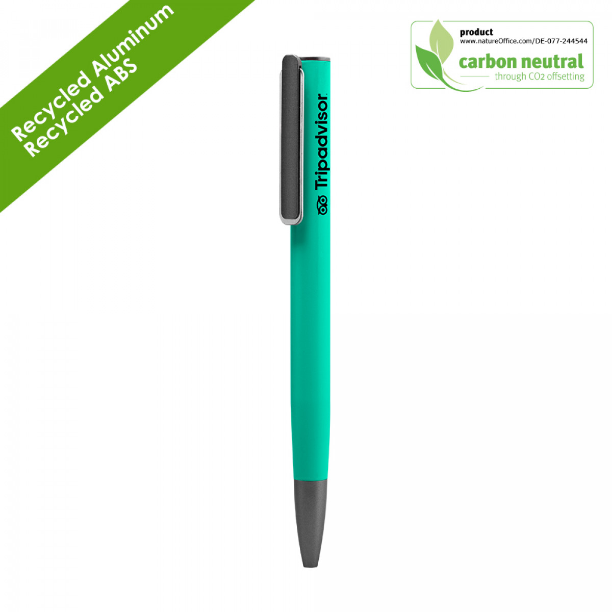 BND192 URRGH : fusion of elegance and eco-conscious design. Crafted with recycled aluminum and recycled ABS, this pen offers durability with a sleek, modern aesthetic. Unique to its design is the innovative push mechanism: simply press down on the clip to reveal the writing tip, combining ease of use with a sophisticated look. In line with chili's commitment to the environment, the BND192 URRGH is carbon-neutral, achieved through effective CO2 offsetting. Ideal for the eco-aware and style-savvy, this pen is a standout choice for those who value functionality, design, and sustainability in every detail. BND 191 is available as a ball pen or with a graphite tip.