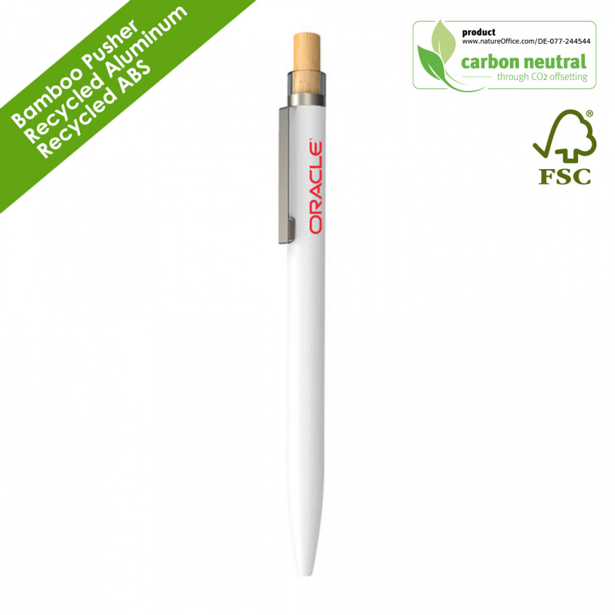 Recycled aluminum, Recycled ABS, FSC Bamboo