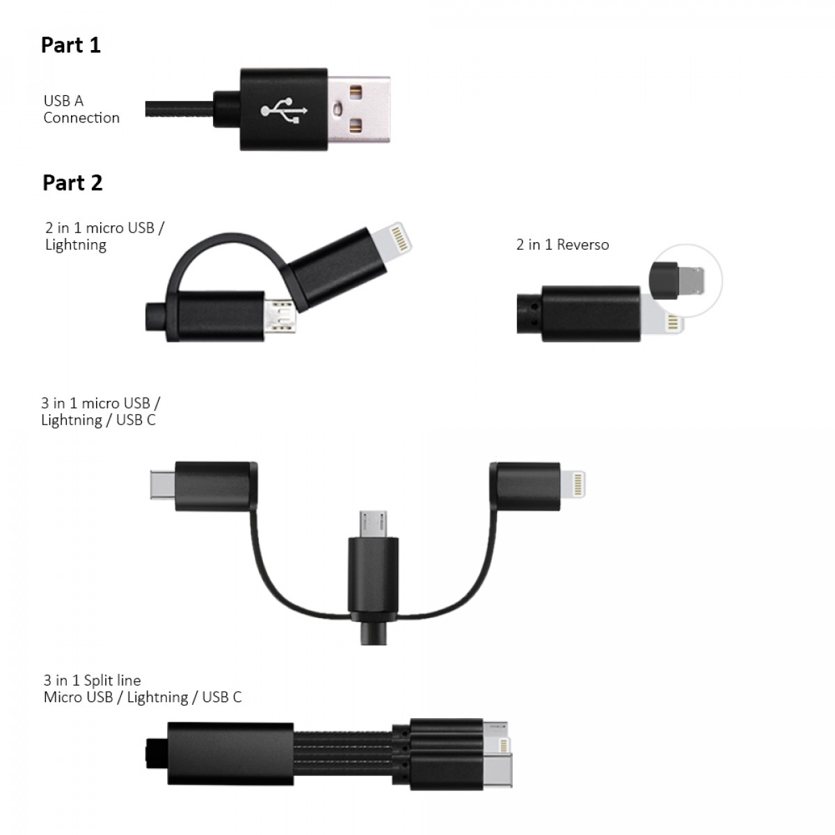 The BND854 Uduo braided charging cable is a versatile and durable cable that is perfect for charging a wide range of devices. This cable features a sleek and stylish braided design that not only looks great but also provides superior protection against wear and tear.With an output of 5V and 2A, this cable is capable of delivering a fast and efficient charging experience for your devices. Whether you need to charge your smartphone, tablet, or any other device, this cable is up to the task.The BND854 Uduo cable comes equipped with a 3-in-1 split line micro USB/lightning/USB-C connector, which means you can use it with a wide range of devices, including iPhones, Android devices, and devices with USB-C ports. This feature makes it a versatile cable that can be used with multiple devices, eliminating the need to carry around multiple cables.The cable features both USB A and USB C connections, which means you can plug it into a wide range of charging sources, including wall chargers, power banks, laptops, and more. The USB A connection is perfect for older devices, while the USB C connection is perfect for newer devices that support USB-C charging.In summary, the BND854 Uduo braided charging cable is a versatile, durable, and efficient cable that is perfect for charging a wide range of devices. With its 3-in-1 split line connector and USB A and USB C connections, it is a must-have accessory for anyone who needs to charge multiple devices on the go.