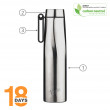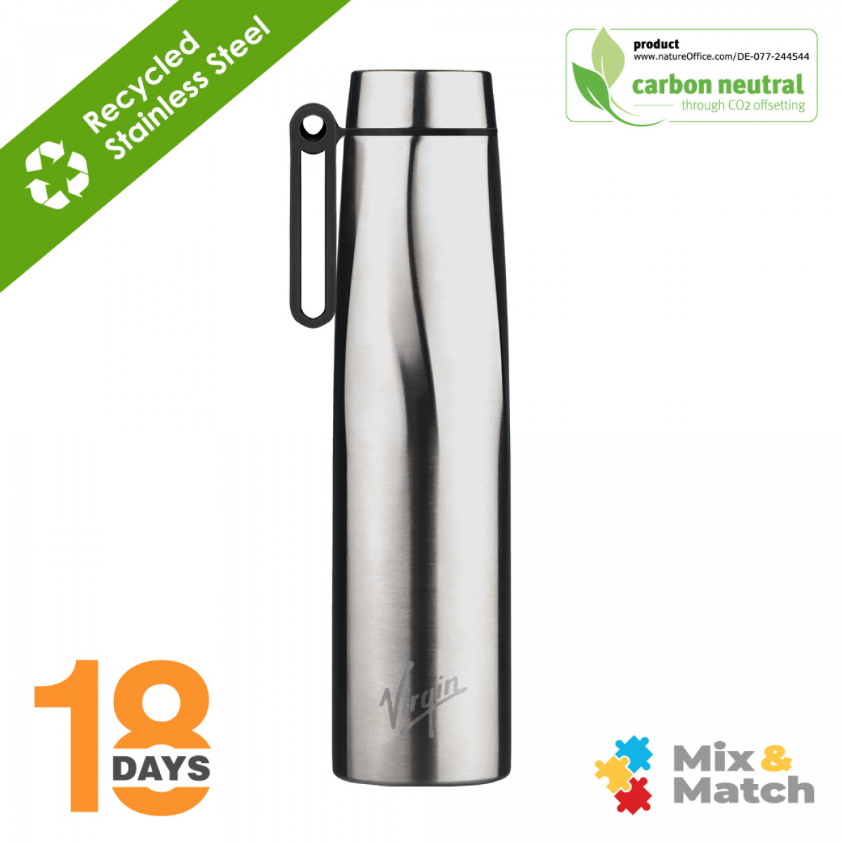 Keep hot beverages warm for up to 12 hours and cold for up to 24 hours. MADE TO FIT YOUR LIFE ! The ergonomic, rotating handle lets you quickly grab our Calypso bottle and go. Stainless steel is a highly sustainable material due to its recyclability. It has one of the highest recycling rates of any metal, with over 90% of it being recycled worldwide. This means that stainless steel can be melted down and reused in the production of new products, reducing the need for new mining and extraction of raw materials. Additionally, stainless steel's long-lasting durability, low maintenance requirements, energy efficiency, and versatility make it an environmentally friendly choice. Its use can help reduce waste, conserve resources, and minimize the carbon footprint of products and processes. It can't get more sustainable than that !