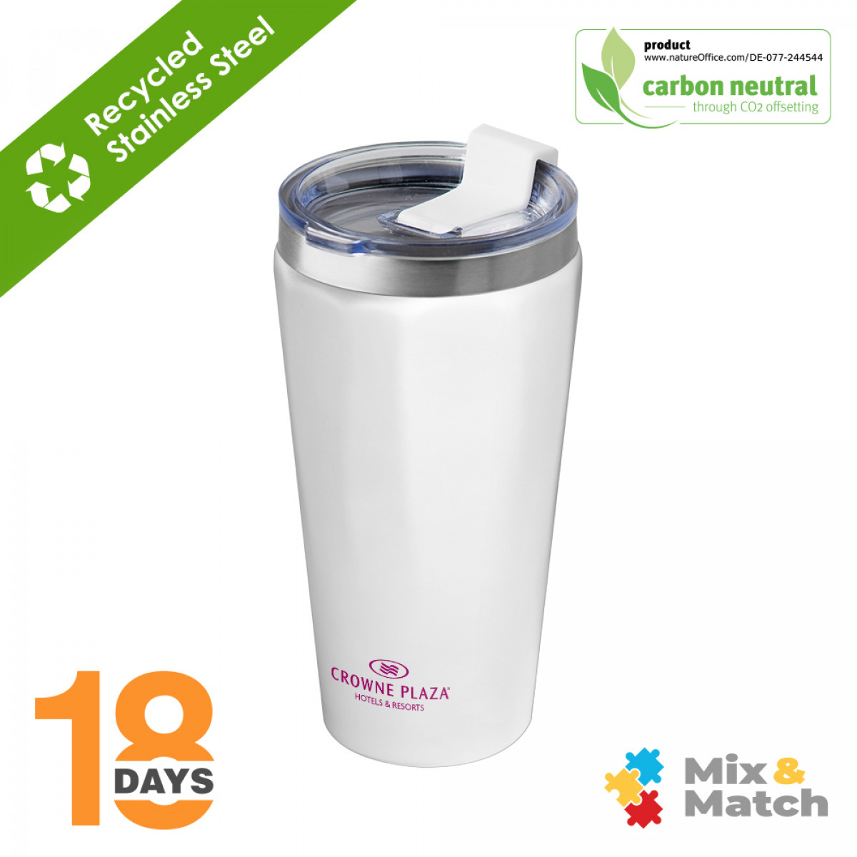Keep hot beverages warm for up to 4 hours and cold for up to 12 hours, your beverage will taste its best and holds its temperature longer in our Calypso tumbler, made of high quality 304 stainless steel, with 2 Lid options: Leak proof or splash proof. Stainless steel is a highly sustainable material due to its recyclability. It has one of the highest recycling rates of any metal, with over 90% of it being recycled worldwide. This means that stainless steel can be melted down and reused in the production of new products, reducing the need for new mining and extraction of raw materials. Additionally, stainless steel's long-lasting durability, low maintenance requirements, energy efficiency, and versatility make it an environmentally friendly choice. Its use can help reduce waste, conserve resources, and minimize the carbon footprint of products and processes. It can't get more sustainable than that !