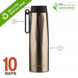 Keep hot beverages warm for up to 12 hours and cold for up to 24 hours. MADE TO FIT YOUR LIFE ! The ergonomic, rotating handle lets you quickly grab our Calypso bottle and go.Portable and perfect for a fast-moving lifestyle all year round, our chic and reusable Calypso Recycled Stainless Steel Bottle offers an environmentally conscious alternative to plastic bottles. Stainless steel is a highly sustainable material due to its recyclability. It has one of the highest recycling rates of any metal, with over 90% of it being recycled worldwide. This means that stainless steel can be melted down and reused in the production of new products, reducing the need for new mining and extraction of raw materials. Additionally, stainless steel's long-lasting durability, low maintenance requirements, energy efficiency, and versatility make it an environmentally friendly choice. Its use can help reduce waste, conserve resources, and minimize the carbon footprint of products and processes. It can't get more sustainable than that !