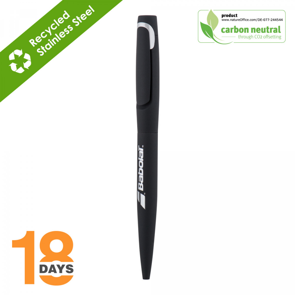 BND80 Twist Metal Ball Pen in Stainless Steel and ABS is the perfect blend of durability and style. Its stainless steel and ABS body offers a sleek and modern look, while also providing a sturdy construction that can withstand daily wear and tear. The twist mechanism is smooth and effortless, allowing you to easily switch between writing and capping. This pen writes with a steady and consistent flow, producing crisp, clear lines every time. Whether you're signing a contract or jotting down a quick note, this pen is sure to make a lasting impression. Stainless steel is a highly sustainable material due to its recyclability. It has one of the highest recycling rates of any metal, with over 90% of it being recycled worldwide. This means that stainless steel can be melted down and reused in the production of new products, reducing the need for new mining and extraction of raw materials. Additionally, stainless steel's long-lasting durability, low maintenance requirements, energy efficiency, and versatility make it an environmentally friendly choice. Its use can help reduce waste, conserve resources, and minimize the carbon footprint of products and processes.