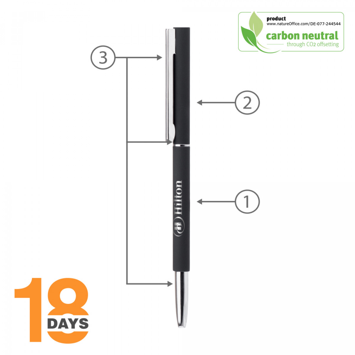 BND71 Thin Twist Metal Ball Pen is a ballpoint pen with a metal body that has a slim-chic profile. It operates using a twist mechanism, where the user twists the body of the pen to extend and retract the tip. The metal material provides durability and a sleek appearance, making it a popular choice for day-to-day use or as a promotional item. The slim profile makes the pen easy to carry in a pocket or notebook, and its twist mechanism protects the tip when not in use. The metal body gives BND71 a modern and professional look, making it a perfect fit for anyone looking for a premium yet a functional pen. Stainless steel is a highly sustainable material due to its recyclability. It has one of the highest recycling rates of any metal, with over 90% of it being recycled worldwide. This means that stainless steel can be melted down and reused in the production of new products, reducing the need for new mining and extraction of raw materials. Additionally, stainless steel's long-lasting durability, low maintenance requirements, energy efficiency, and versatility make it an environmentally friendly choice. Its use can help reduce waste, conserve resources, and minimize the carbon footprint of products and processes.