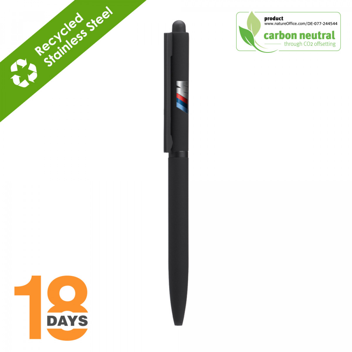 BND78XLS Stylus Twist Metal Ball Pen in Brass, Stainless Steel, and ABS is the epitome of modern elegance. Its brass, stainless steel, and ABS construction gives it a unique and stylish look that is sure to turn heads. The twist mechanism is smooth and effortless, allowing you to switch seamlessly between the ballpoint pen and the stylus. The pen writes with a steady and consistent flow, producing crisp, clear lines every time, while the stylus tip offers precise navigation on touchscreens. This pen is the perfect accessory for anyone who wants to make a statement while staying organized and productive. Stainless steel is a highly sustainable material due to its recyclability. It has one of the highest recycling rates of any metal, with over 90% of it being recycled worldwide. This means that stainless steel can be melted down and reused in the production of new products, reducing the need for new mining and extraction of raw materials. Additionally, stainless steel's long-lasting durability, low maintenance requirements, energy efficiency, and versatility make it an environmentally friendly choice. Its use can help reduce waste, conserve resources, and minimize the carbon footprint of products and processes.