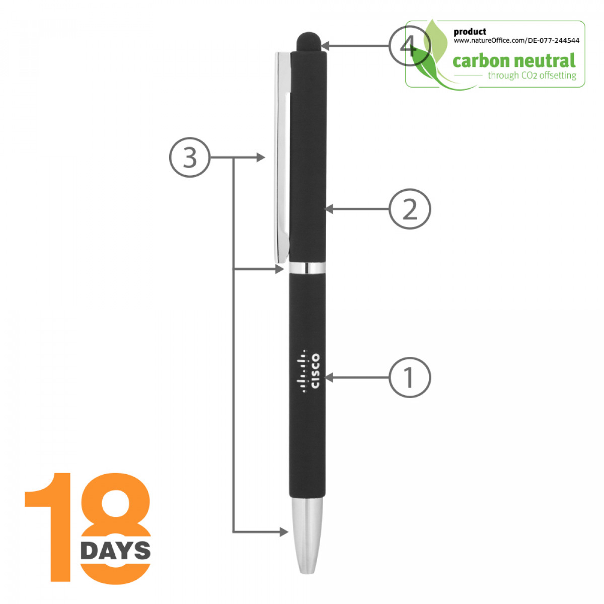 BND71XLS Stylus Twist Metal Ball Pen in Brass, Stainless Steel, and ABS is a sophisticated writing tool that combines timeless elegance with modern functionality. Its brass, stainless steel, and ABS construction gives it a classic yet contemporary look, making it the perfect accessory for both personal and professional use. The twist mechanism is quick and effortless, allowing you to switch between writing and navigating your devices with ease. The pen writes smoothly, providing clean and precise lines, while the stylus tip offers accuracy and precision on touchscreens. This pen is a must-have for anyone who values both style and performance. Stainless steel is a highly sustainable material due to its recyclability. It has one of the highest recycling rates of any metal, with over 90% of it being recycled worldwide. This means that stainless steel can be melted down and reused in the production of new products, reducing the need for new mining and extraction of raw materials. Additionally, stainless steel's long-lasting durability, low maintenance requirements, energy efficiency, and versatility make it an environmentally friendly choice. Its use can help reduce waste, conserve resources, and minimize the carbon footprint of products and processes.