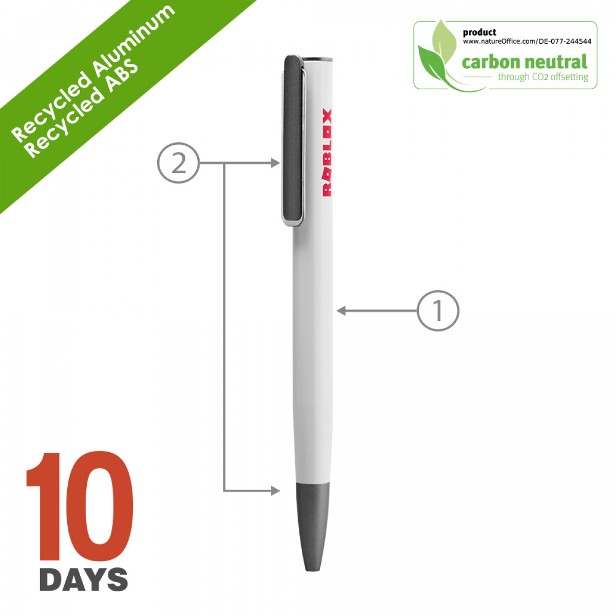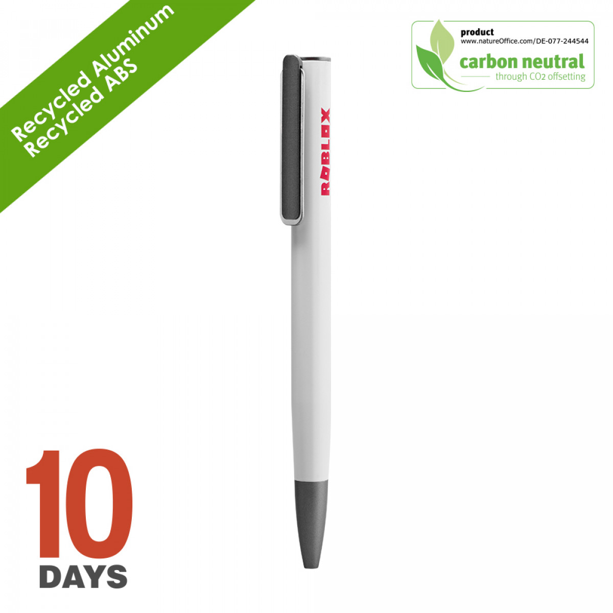 BND192 URRGH : fusion of elegance and eco-conscious design. Crafted with recycled aluminum and recycled ABS, this pen offers durability with a sleek, modern aesthetic. Unique to its design is the innovative push mechanism: simply press down on the clip to reveal the writing tip, combining ease of use with a sophisticated look. In line with chili's commitment to the environment, the BND192 URRGH is carbon-neutral, achieved through effective CO2 offsetting. Ideal for the eco-aware and style-savvy, this pen is a standout choice for those who value functionality, design, and sustainability in every detail. BND 191 is available as a ball pen or with a graphite tip.