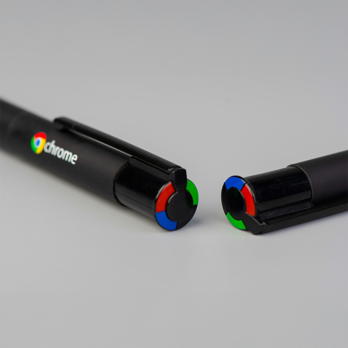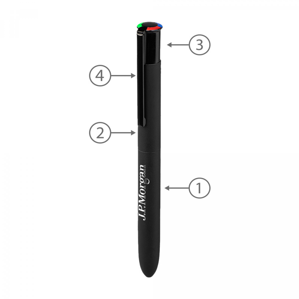 BND141 4-color ball pen, made of recycled aluminum, is a sleek and stylish writing instrument that combines elegance and functionality. This pen features four colors in one convenient pen: black, blue, red, and green. A comfortable wide barrel and plastic clip ensure you can easily get hold of it, making your writing experience smooth and convenient. Its long-lasting German ink is excellent for crafts, school, or office supplies.