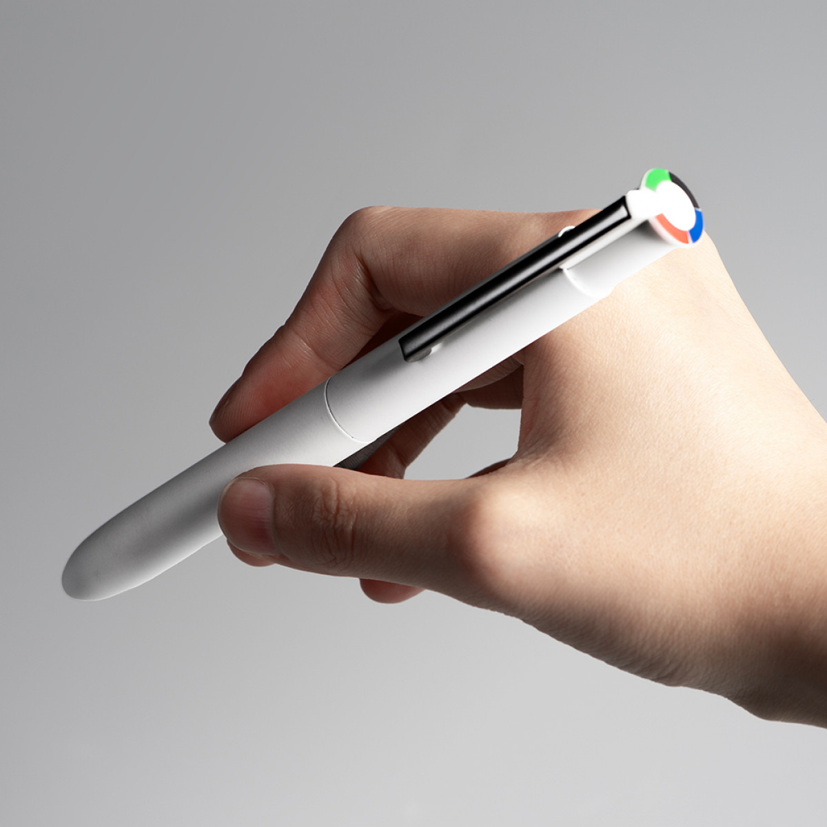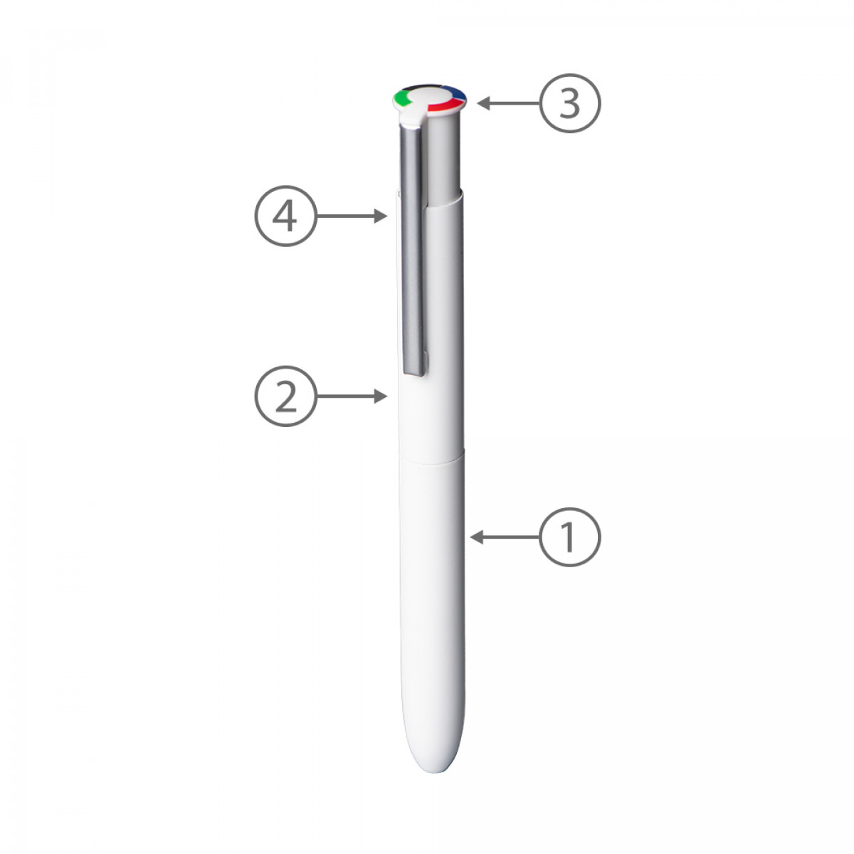 BND141 4-color ball pen, made of recycled aluminum, is a sleek and stylish writing instrument that combines elegance and functionality. This pen features four colors in one convenient pen: black, blue, red, and green. A comfortable wide barrel and plastic clip ensure you can easily get hold of it, making your writing experience smooth and convenient. Its long-lasting German ink is excellent for crafts, school, or office supplies.