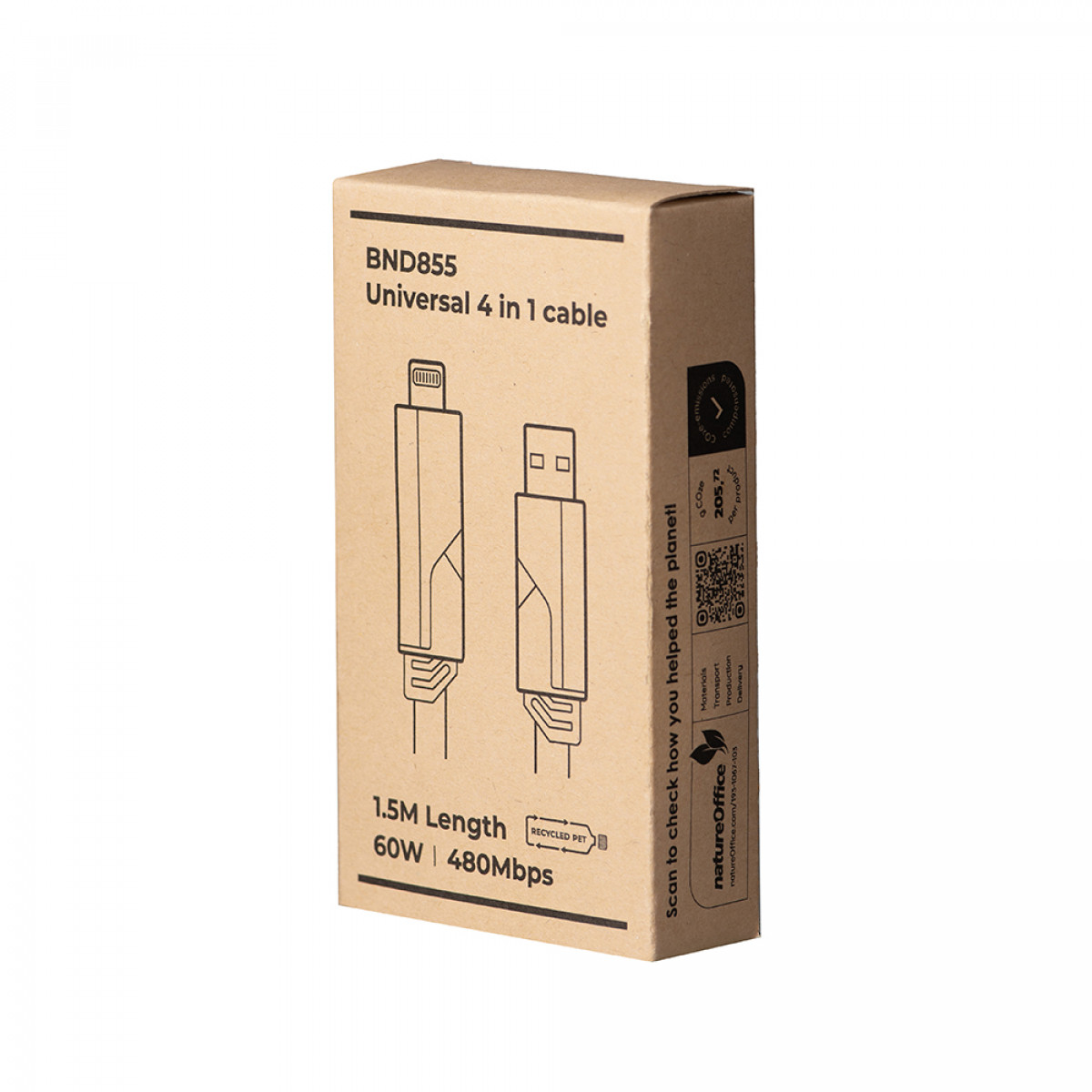 BND855 Universal 4 in 1 cable, RPET, 60W STOCK
