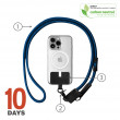 Made of RPET this innovative accessory is designed to keep your phone close and easily accessible. Thanks to its small adaptor, it can be attached to any phone case. Inspired by the ropes and lines used in the yatching and climbing world, its large section of cord ensures a comfortable fit. You want it shorter? Easy! Just tie a knot or 2! BND999 is a compatible shoulder strap of Chili crossover bags BND982, BND983 and BND985.