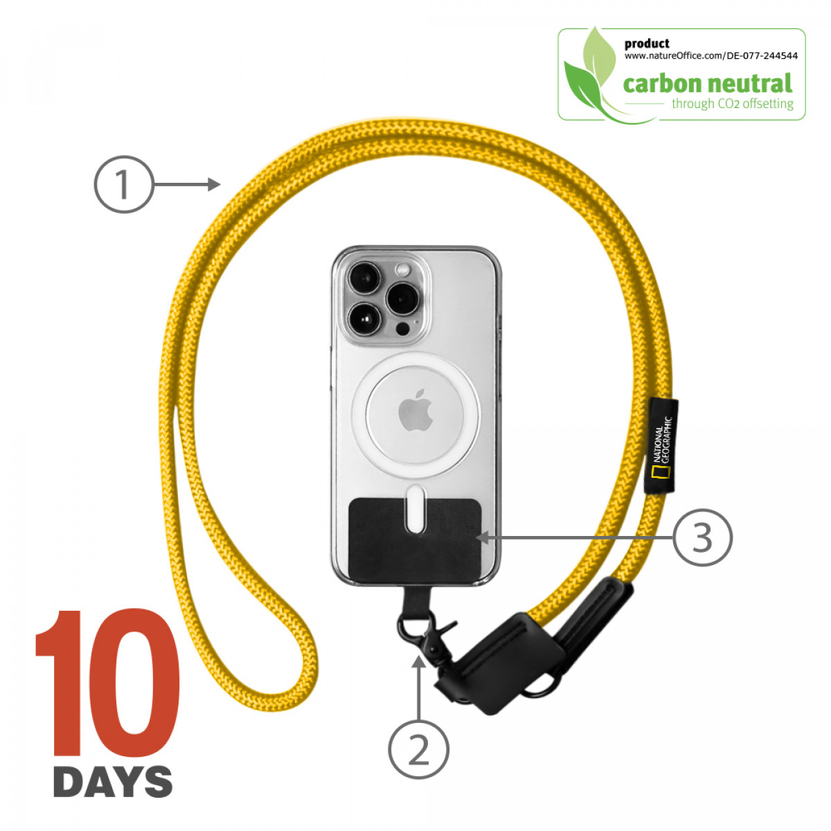 Made of RPET this innovative accessory is designed to keep your phone close and easily accessible. Thanks to its small adaptor, it can be attached to any phone case. Inspired by the ropes and lines used in the yatching and climbing world, its large section of cord ensures a comfortable fit. You want it shorter? Easy! Just tie a knot or 2! BND999 is a compatible shoulder strap of Chili crossover bags BND982, BND983 and BND985.