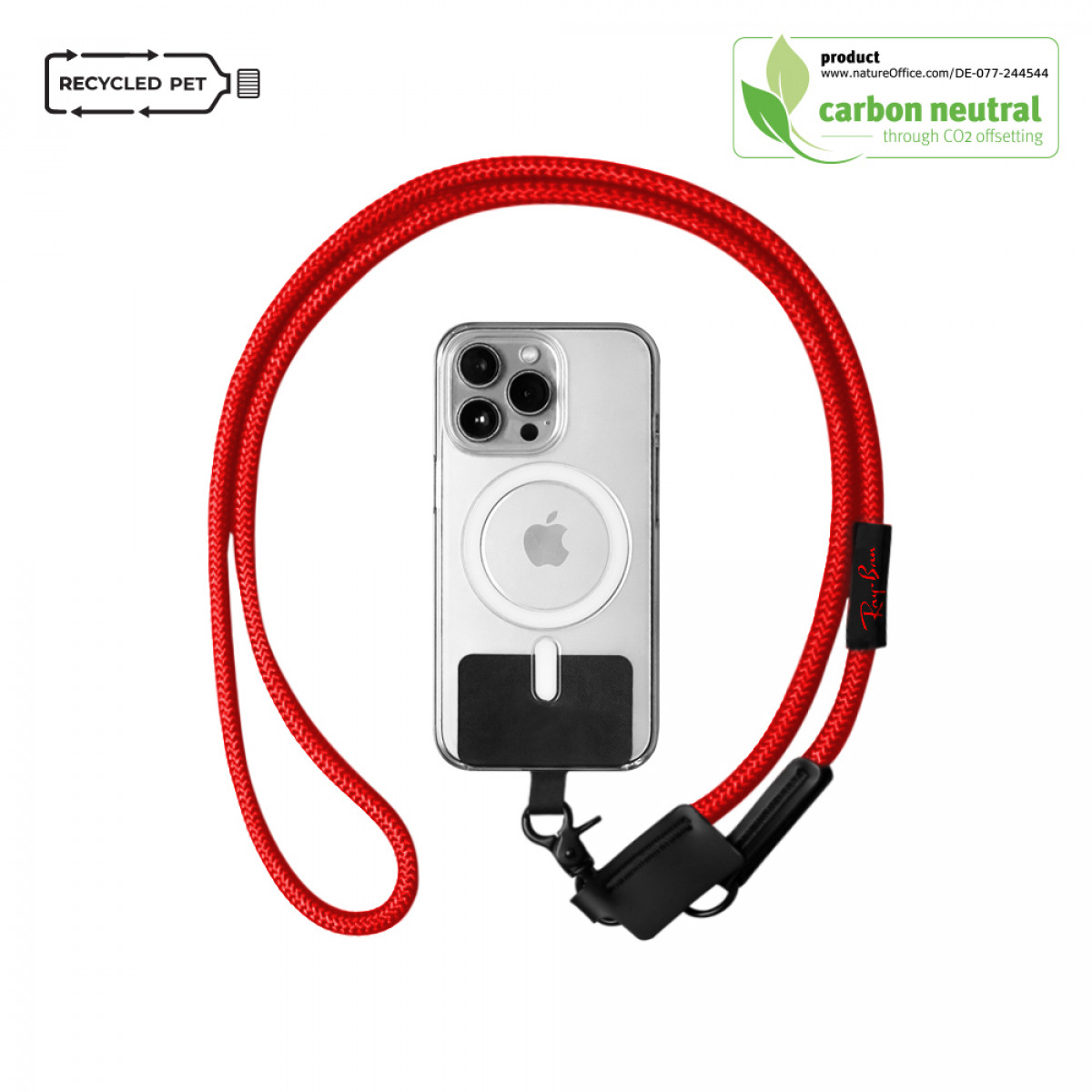 Made of Recycle Polyester, this innovative accessory is designed to keep your phone close and easily accessible. Thanks to its small adaptor, it can be attached to any phone case. Inspired by the ropes and lines used in the yatching and climbing world, its large section of cord ensures a comfortable fit. You want it shorter? Easy! Just tie a knot or 2!